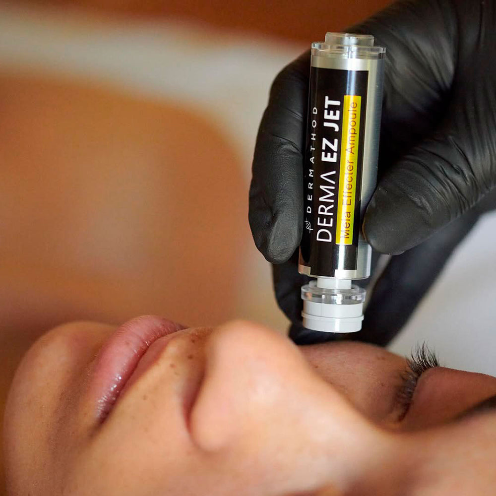 Especialmente diseñada para tratar la hiperpigmentación, la Ampolla Mela Effector viene con un “estimulador de microneedles” integrado, que maximiza la absorción de la ampolla al crear pequeños canales en la piel.