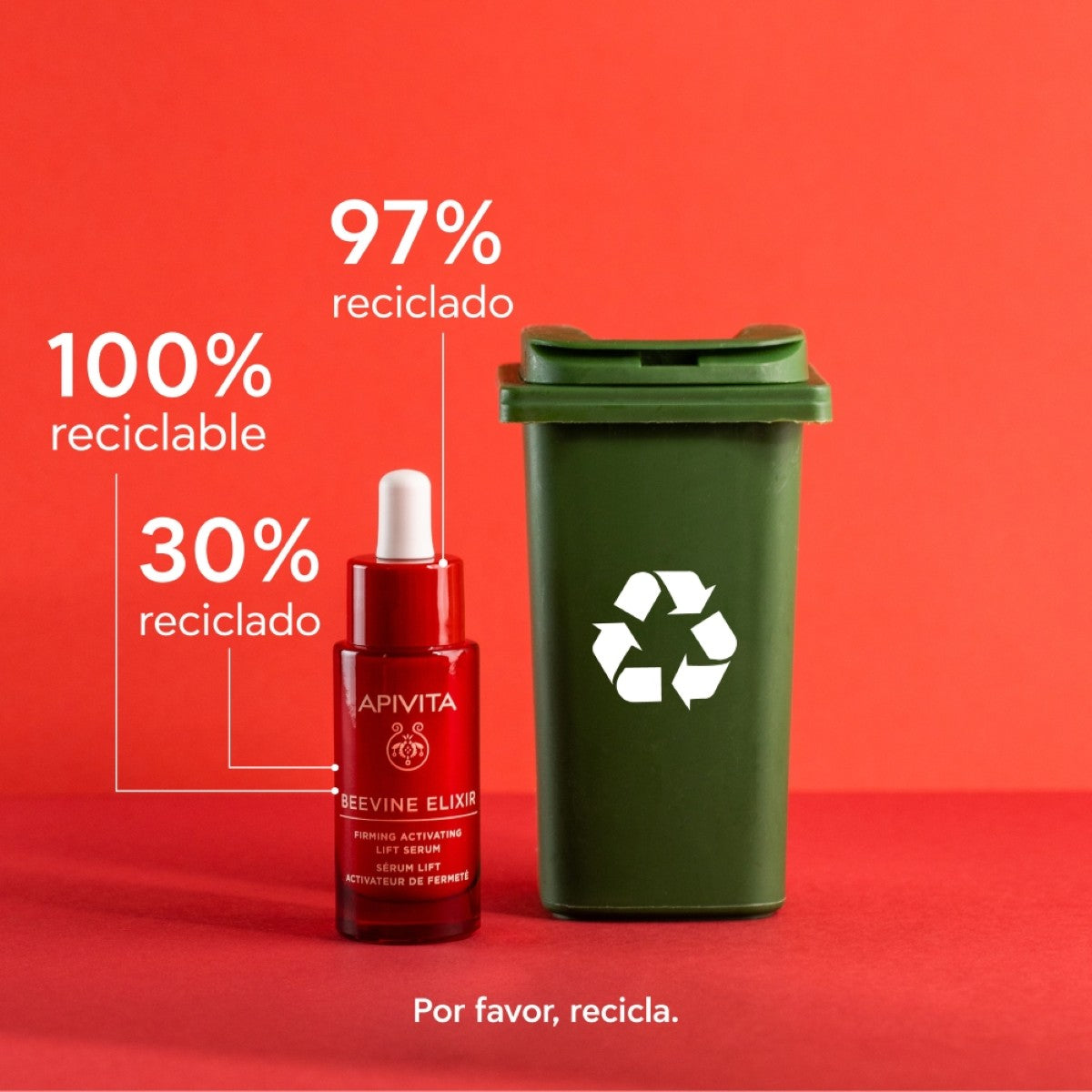 Descubre el secreto para una piel visiblemente más joven y radiante con el Serum Lift Activador de Firmeza Beevine Elixir de Apivita, una joya de la cosmética griega Este elixir concentrado, con su textura ligera y sedosa, se convertirá en tu aliado diario para combatir los signos del envejecimiento y revelar una piel llena de vitalidad. Enriquecido con el innovador PROPOLIFT complex, una patente exclusiva de Apivita, este serum combina el poder antioxidante de los polifenoles del propóleo y de la vid con el colágeno vegetal, un trío dinámico que trabaja en sinergia para recuperar el equilibrio de colágeno de una piel joven. ¿El resultado? Una acción antiedad intensiva que notarás desde las primeras aplicaciones.