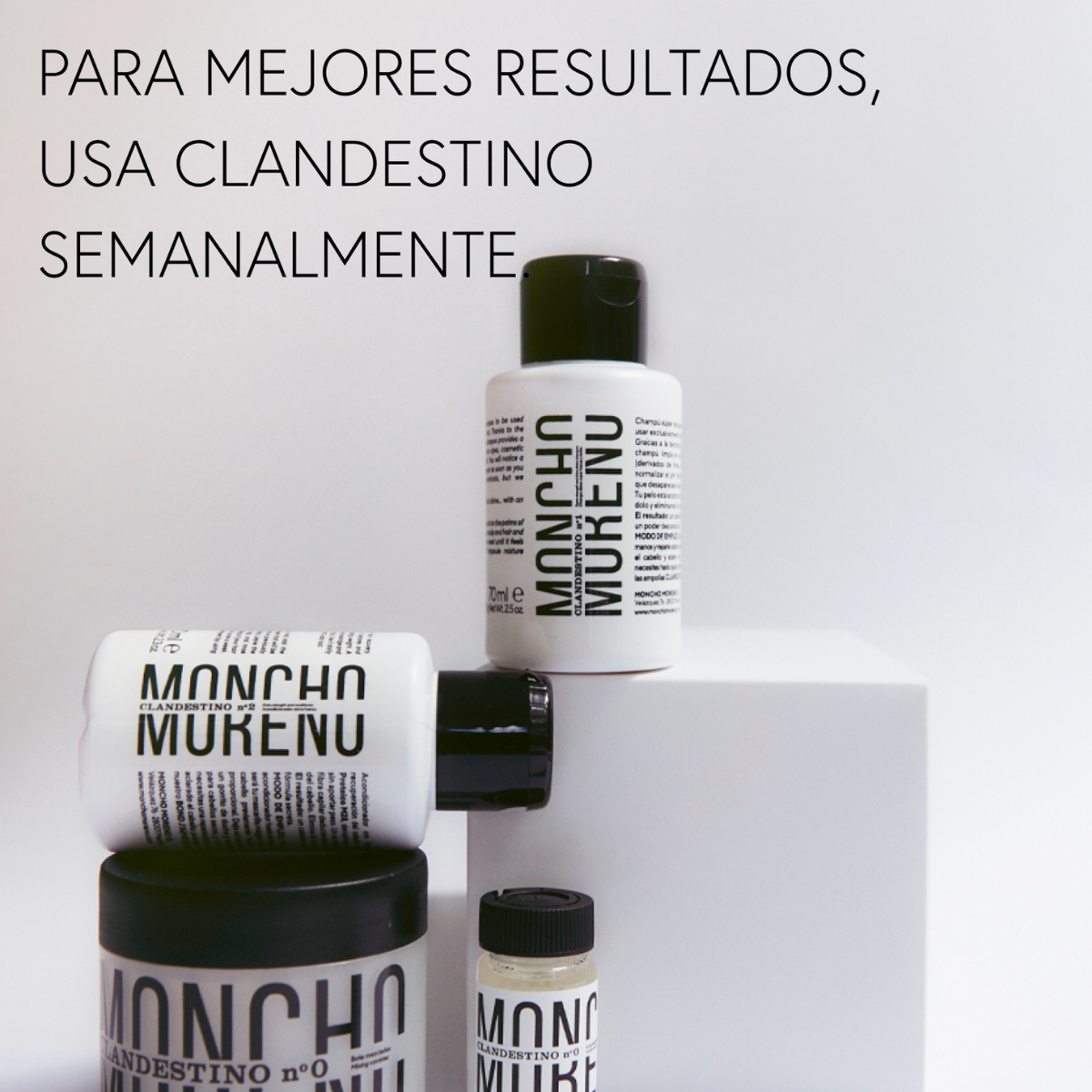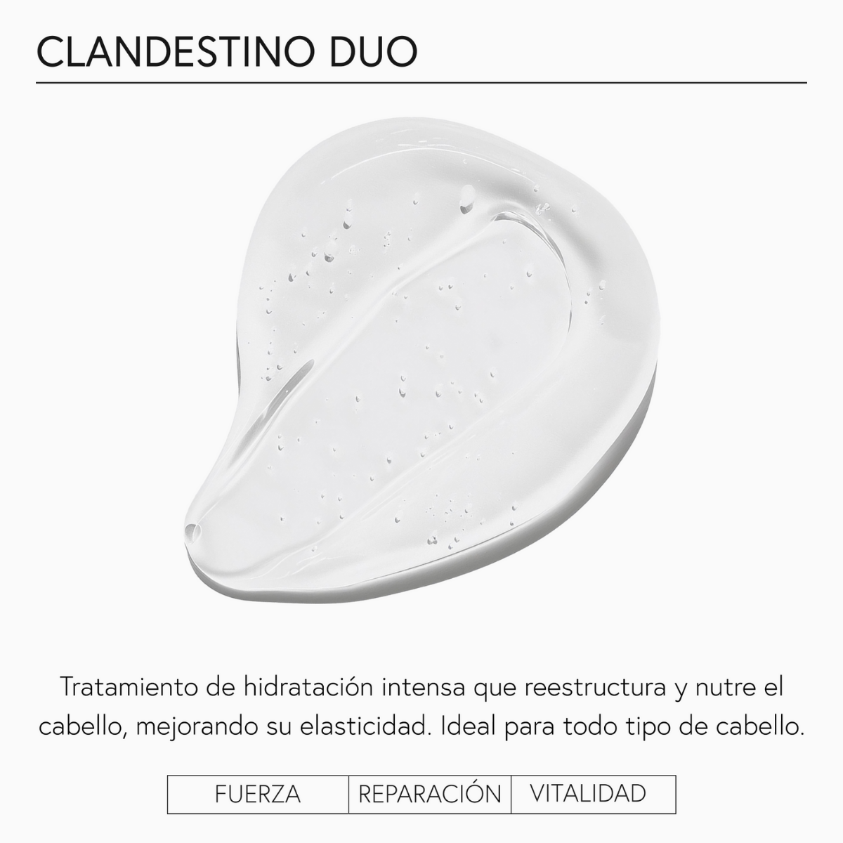 Clandestino Nº0 (Instant Repair Vials): Alcohol Denat, Propylene Glycol, Myristyl Alcohol, Cetrimonium Chloride, Isopropyl Alcohol, Aqua (Water/Eau), Dicetyldimonium Chloride, Silicone Quaternium-22, Dipropylene Glycol, PPG-3 Myristyl Ether, Polysorbate 20, Sodium PCA, Sodium Lactate, Arginine, Aspartic Acid, Panthenol, PCA, Hydrolyzed Vegetable Protein PG-Propyl Silanetriol, Glycine, Alanine, Serine, Valine, Proline, Threonine, Isoleucine, Histidine, Phenylalanine, Phenyl Trimethicone, Lactic Acid, Glycolic Acid, BHT, Polysilicone-29, Disodium EDTA, Phenoxyethanol, Potassium Sorbate. Clandestino Nº1 (Super Strength and Shine Detox Shampoo): Aqua (Water/Eau), Sodium Lauryl Sulfate, Cocamidopropyl Betaine, Lauryl Glucoside, Glycerin, Hydrolyzed Vegetable Protein PG-Propyl Silanetriol, Arginine, Sodium PCA, Sodium Lactate, Aspartic Acid, PCA, Glycine, Alanine, Serine, Valine, Isoleucine, Proline, Threonine, Histidine, Phenylalanine, Salicylic Acid, Acrylates Copolymer, Amodimethicone, Benzyl Alcohol, Citric Acid, Laureth-9, Disodium EDTA, Trideceth-12, Sodium Lauroyl Sarcosinate, Propylene Glycol, Sodium Chloride, Sodium Hydroxide, Sorbic Acid, Phenoxyethanol, Triethylene Glycol, Sodium Benzoate, Potassium Sorbate, Fragrance (Parfum), Limonene. Clandestino Nº2 (Extra Strength Conditioner): Aqua (Water/Eau), Cetyl Alcohol, Cetrimonium Chloride, Amodimethicone, Hydrolyzed Vegetable Protein PG-Propyl Silanetriol, Arginine, Sodium PCA, Sodium Lactate, Aspartic Acid, PCA, Glycine, Alanine, Serine, Valine, Isoleucine, Proline, Threonine, Histidine, Phenylalanine, Panthenol, Disodium EDTA, Trideceth-12, Propylene Glycol, Phenoxyethanol, Triethylene Glycol, Potassium Sorbate, Citric Acid, Fragrance (Parfum), Limonene.